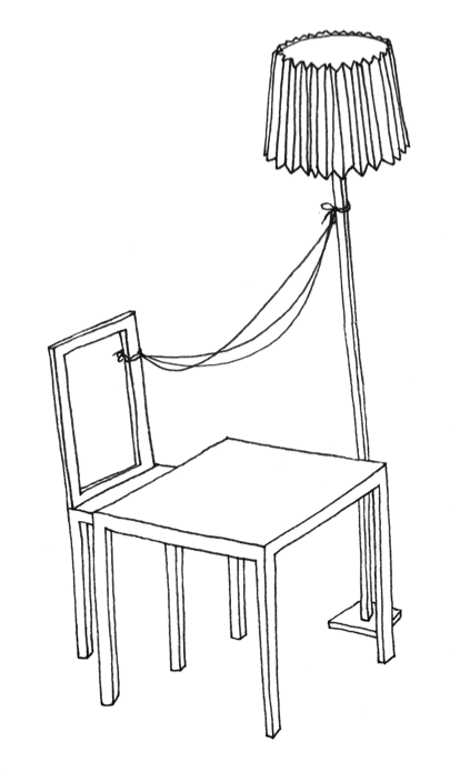 Du liest die Worte über die Frau, die von irgendwoher kommt und irgendwohin geht. Neben Bleistiftstrichen. Wenn Du Deinen Kopf ganz leicht nach rechts neigst, rückt die Nähmaschine ein bisschen mehr nach links in Dein Blickfeld und verdeckt Teile des Texts. Nähst Du? Von den unverdeckten Teilen machst Du Dir ein Bild. Kühl, sagst Du. Die Frau ist kühl. Du möchtest wissen, woher sie kommt und wohin sie geht. Versuchst Dir vorzustellen, was sie denkt. Wie der Mann an der Tür.